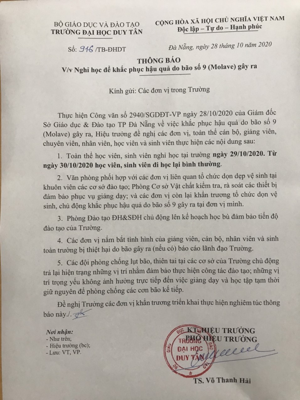 Thông báo nghỉ học khắc phục sau bão