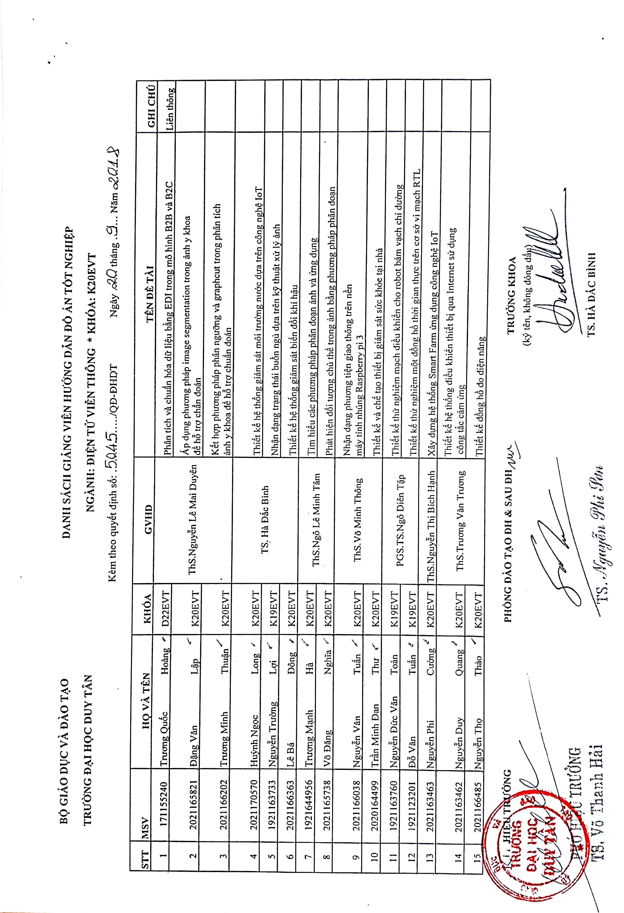 Các sinh viên có tên trong quyết định kèm theo chính là các sinh viên được tham gia bảo vệ đồ án và có tên trong danh sách khảo sát tin, khảo sát anh văn đợt tháng 12/2018.